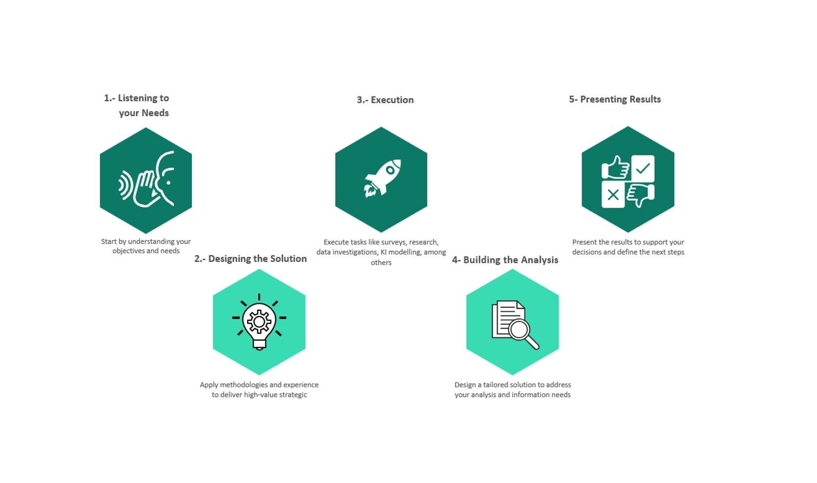 In order to discover the market potential respectively whether potential clients like the product, our partners offer methodologies cover the "Research Circle" from which we uncover "Insights," evaluate products, conduct "Testing," and provide follow-up on executions through "Monitoring."
